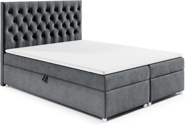 Das Boxspringbett verfügt über zwei großzügige Bettkästen mit leichtgängigem Federmechanismus – ideal zur Aufbewahrung von Bettwäsche, Decken oder Kleidung. So bleibt Ihr Schlafzimmer ordentlich und gut organisiert, ohne auf Stil oder Komfort zu verzichten.