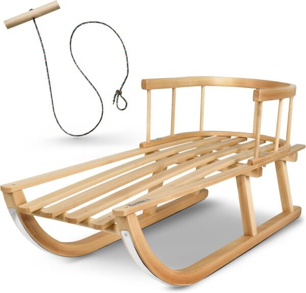 BAMBINIWELT Holzschlitten mit Rückenlehne + Zugleine – Lehne -Kinderschlitten – Schlitten aus Holz Kinderschlitten NEU