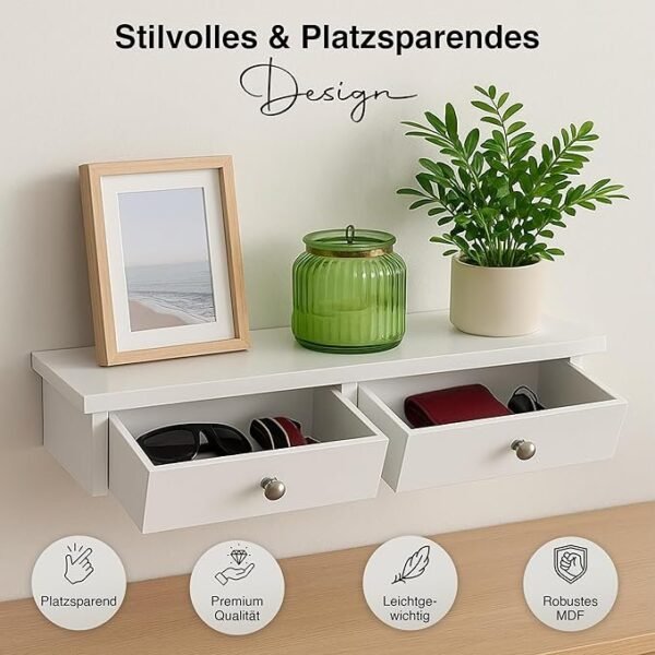 Best For Home | Hängeregal | Weißer Wandschrank 65x15x10 cm | Wandregal mit Schubladen | Hängeschublade | Kleines Wandregal aus MDF der Klasse E1 | wandschrank hängend