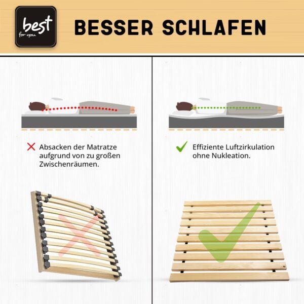 Best For You Rollrost aus 15 oder 20 massiven stabilen Holzlatten Geeignet für alle Matratzen – in viele Größen 60×120 cm – 140×200 cm (120×200-15 Latten)