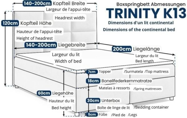 Best for You – Boxspringbett Polsterbett Sawana mit Bonellfederkern-Matratze und Topper Schlafzimmer