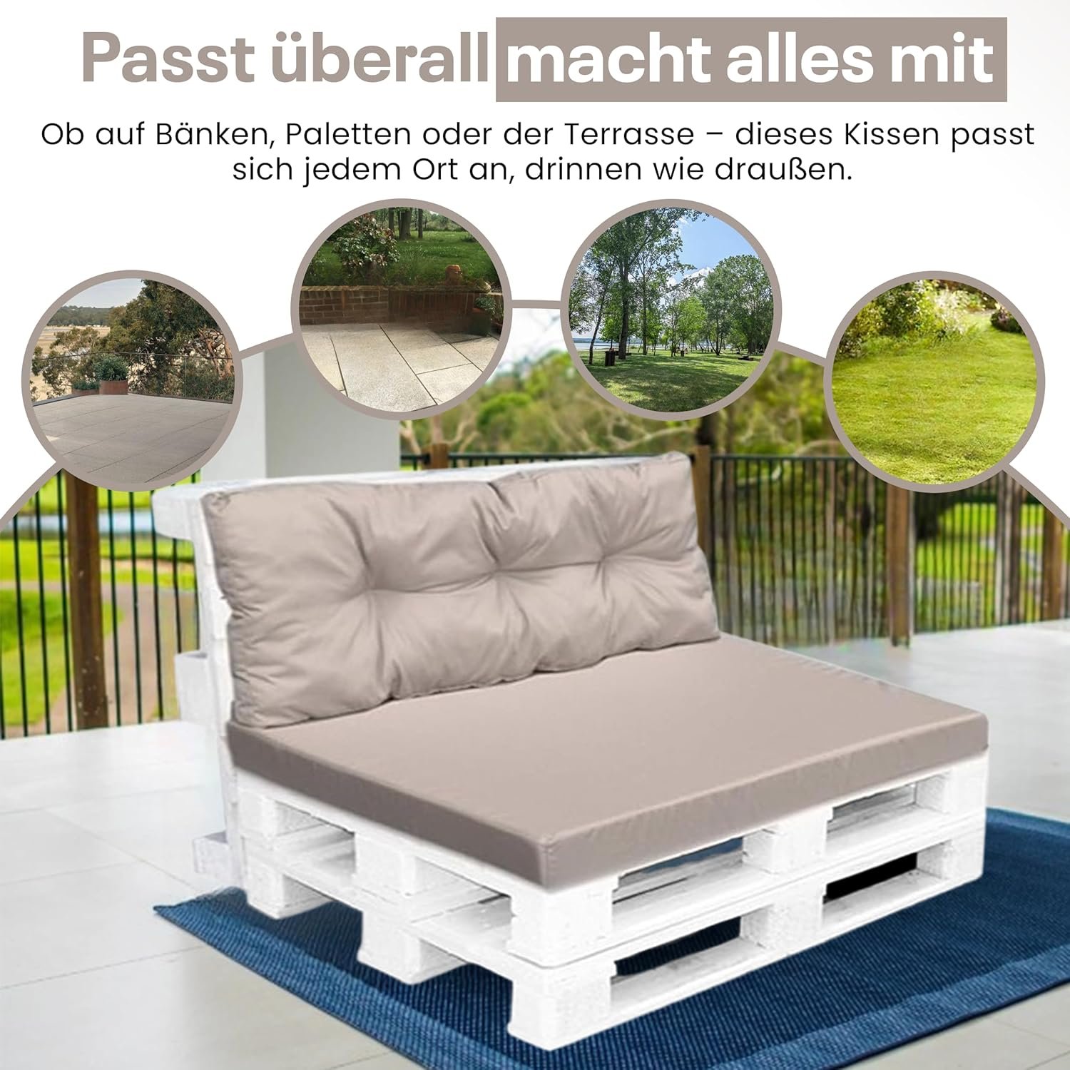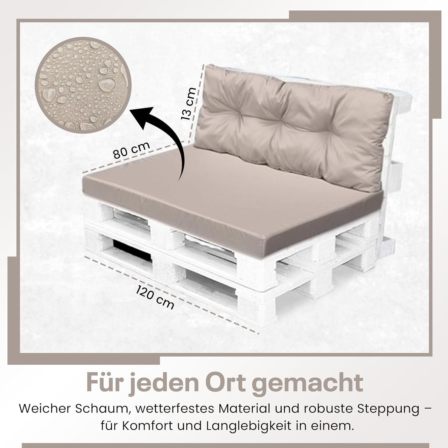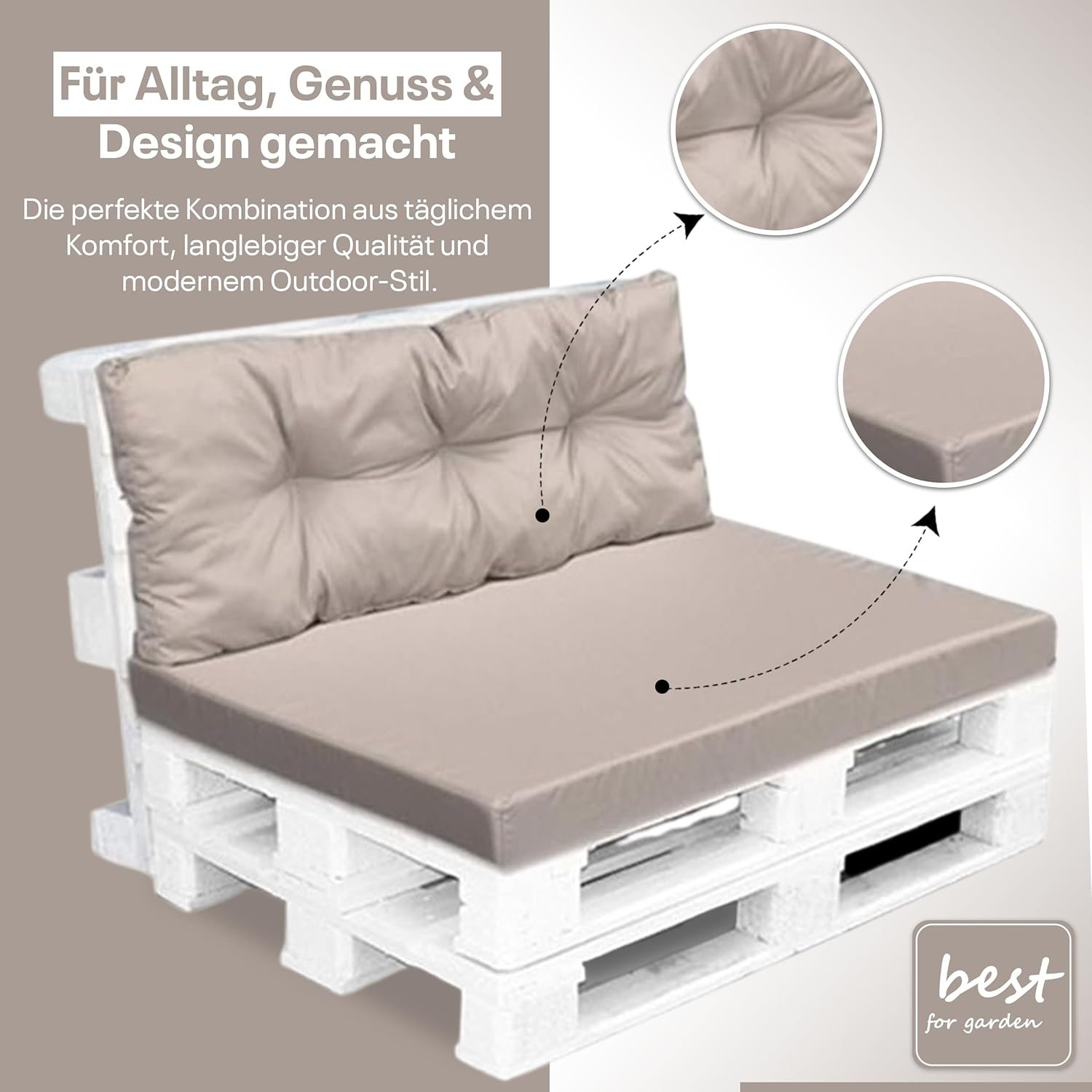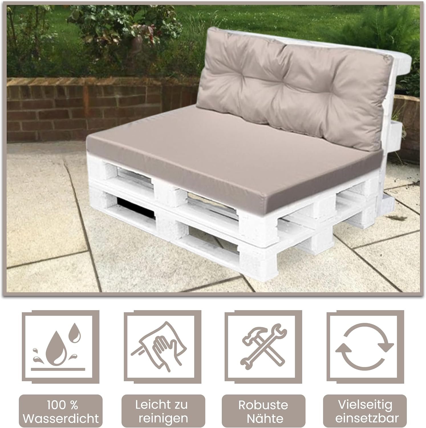4myBaby GmbH Best for Garden – Robustes, wasserfestes Paletten-Sitzkissen mit Rückenteil, waschbar & ideal für Outdoor