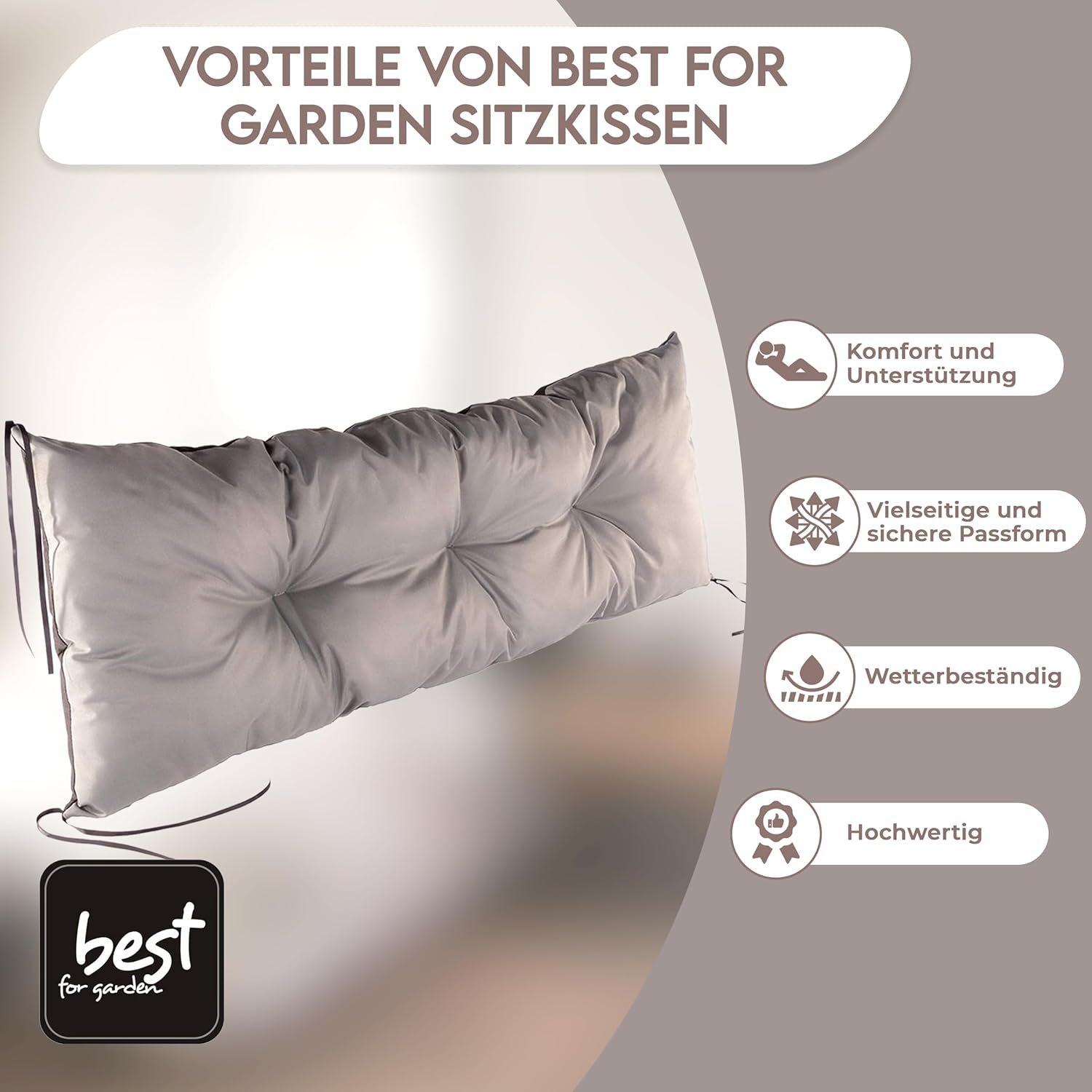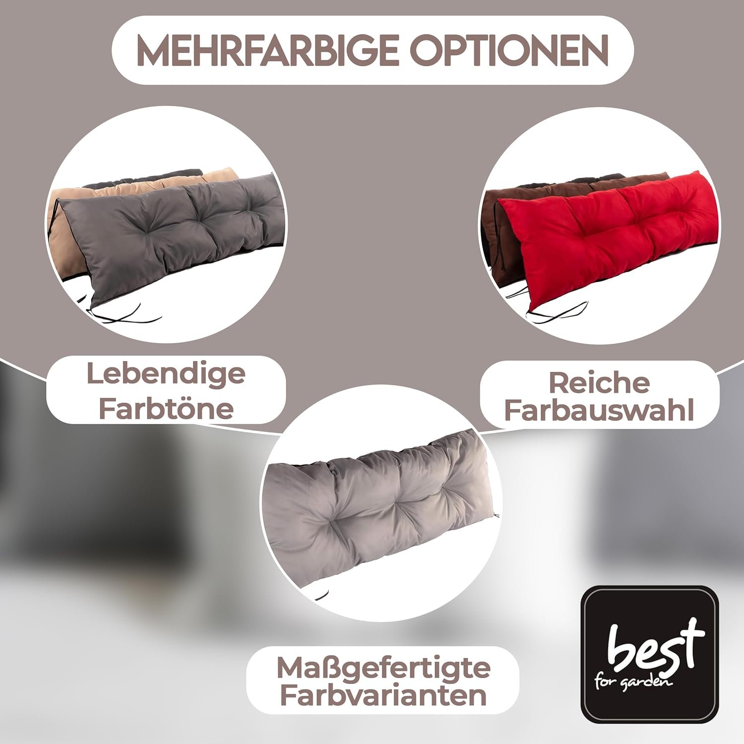 4myBaby GmbH Best for Garden Sitzkissen mit Rückenteil für 2 Personen Bank Bankauflage KOMPLETT in 4 Größen und 6 Farben