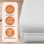 - Waschbarer Bezug mit Reißverschluss: Die Matratze 60×120 ist mit einem abnehmbaren Bezug ausgestattet, der über einen praktischen Reißverschluss verfügt, der die Pflege vereinfacht. Der Bezug kann bei bis zu 95°C gewaschen werden, was eine gründliche Reinigung und optimale Hygiene ermöglicht. Dieser waschbare Bezug trägt dazu bei, die Matratze frisch und allergenfrei zu halten, ihre Lebensdauer zu verlängern und sie wie neu aussehen zu lassen.