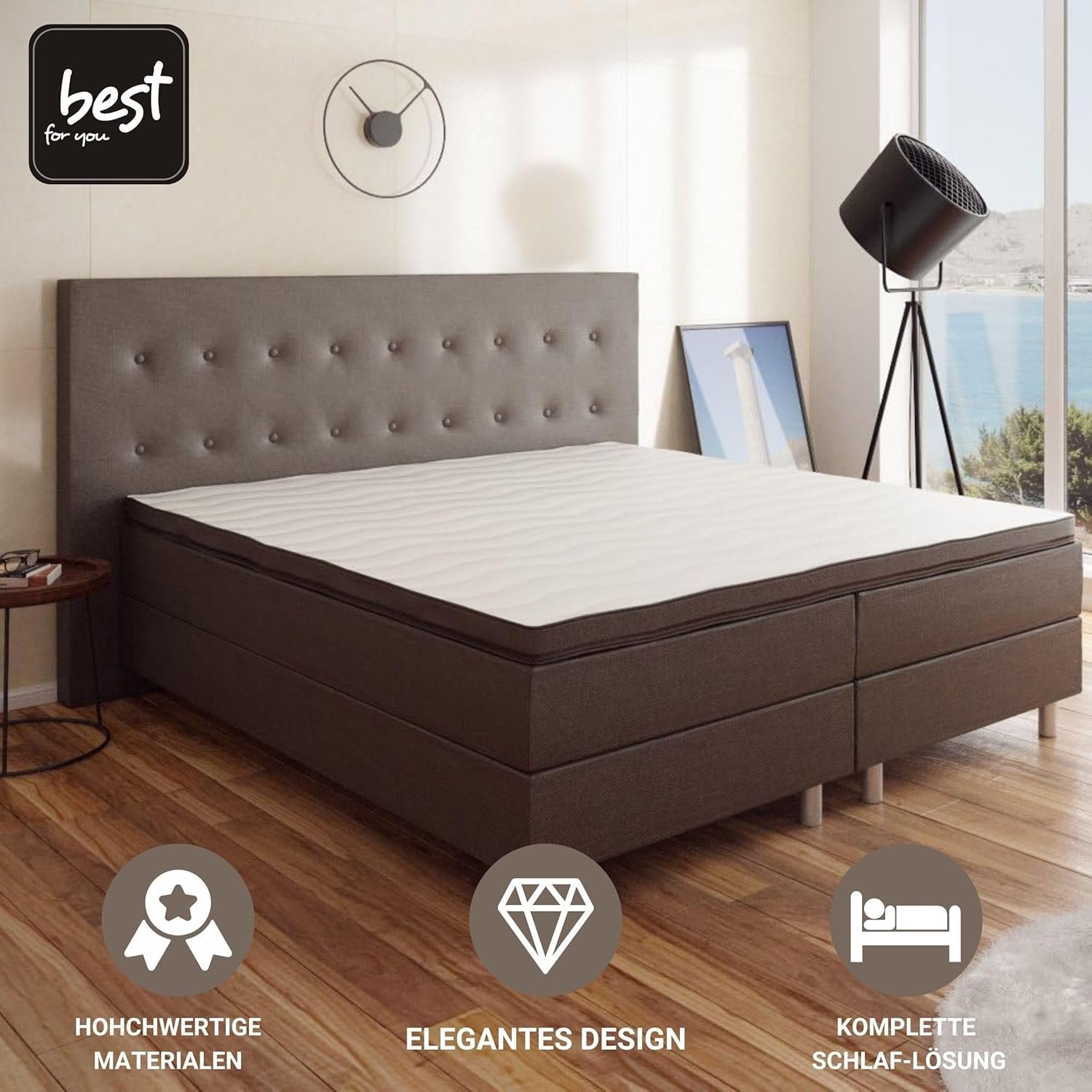 4myBaby GmbH – Boxspringbett | Neo First Class Boxspringbett 140×200 | Doppelbett 140×200 | Boxspringbett mit Matratze | Polsterbett 140×200 mit Matratze | 7-Zonen-Bonellfederkern und Topper