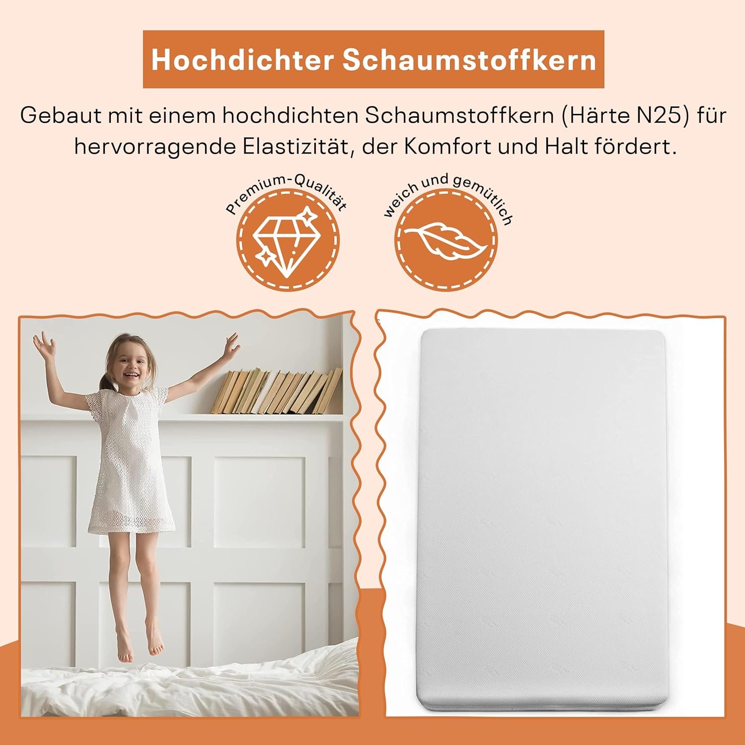 Gefertigt aus schadstofffreiem, langlebigem Schaumstoff, gewährleistet diese Matratze eine sichere und gesunde Schlafumgebung. Sie bietet stabile Unterstützung bei gleichzeitig hoher Komfortqualität und ist die perfekte Wahl für gesundheitsbewusste Familien, die Wert auf Umweltfreundlichkeit legen.
