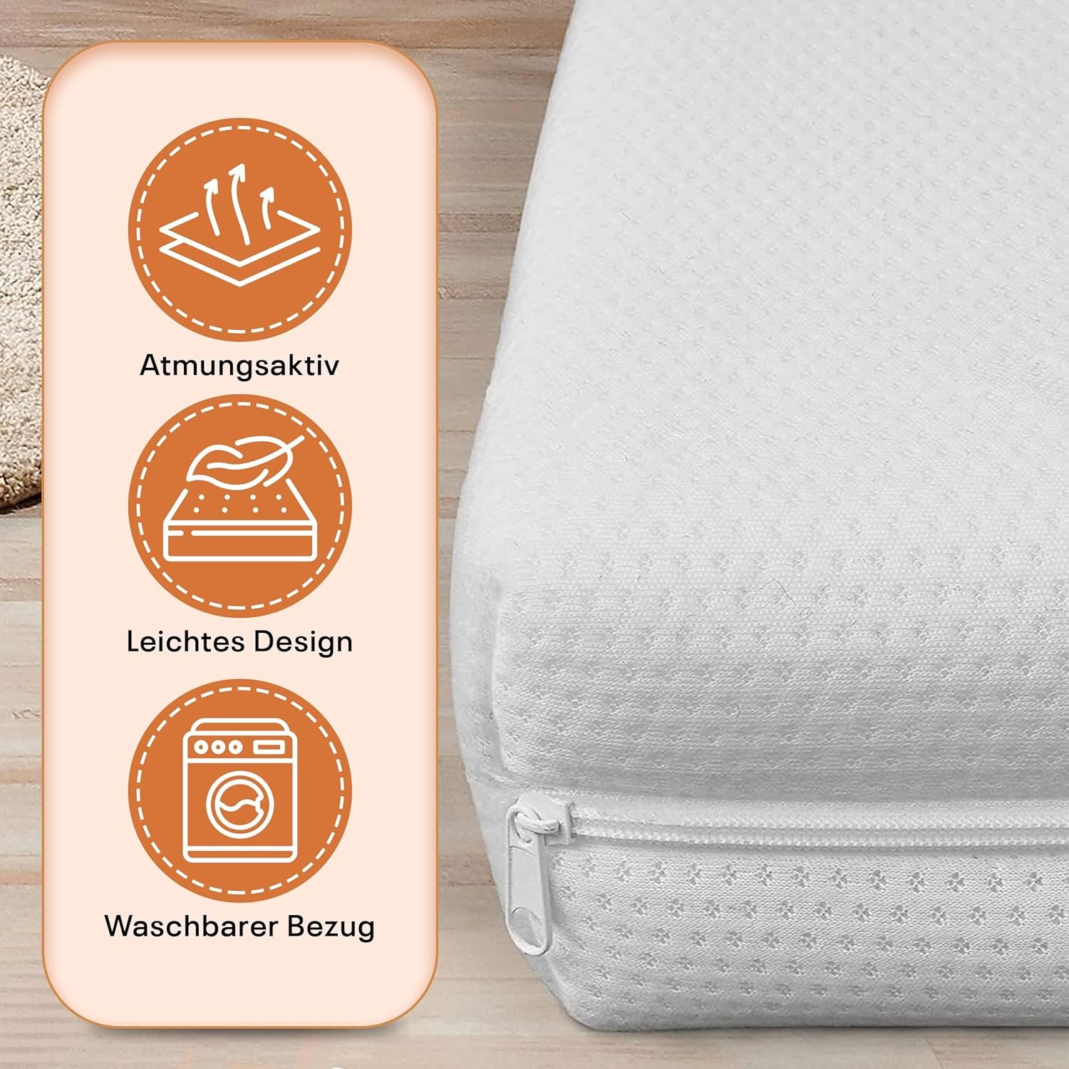Praktischer, waschbarer Bezug mit Reißverschluss: