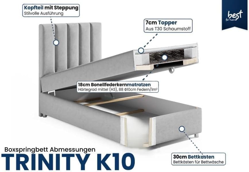 Be the first to review “Boxspringbett mit Bettkasten Trinity K-10 Single Bonellfederkern inkl. Topper, mit Lieferung, Aufbau & Entsorgung”