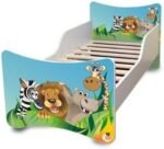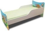 Das Kinderbett mit 10-cm-Matratze ist in vielen Designs erhältlich und besteht aus hochwertigen Spanplatten. Die farbigen Frontmotive werden mit ökologischen Farben bedruckt und zusätzlich laminiert, sodass sie nicht verblassen oder abgewischt werden können. Weiße Seitenteile und geschützte Bettkanten bieten zusätzliche Sicherheit für Ihr Kind.
