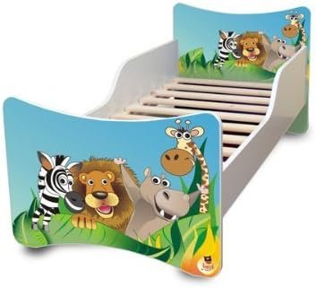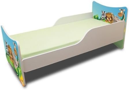 Babybett Kinderbett mit Schaummatratze mit Zertifiziert Jugendbett 70×140 + Matratze + Lattenrost +WANDAUFKLEBER (Zoo)