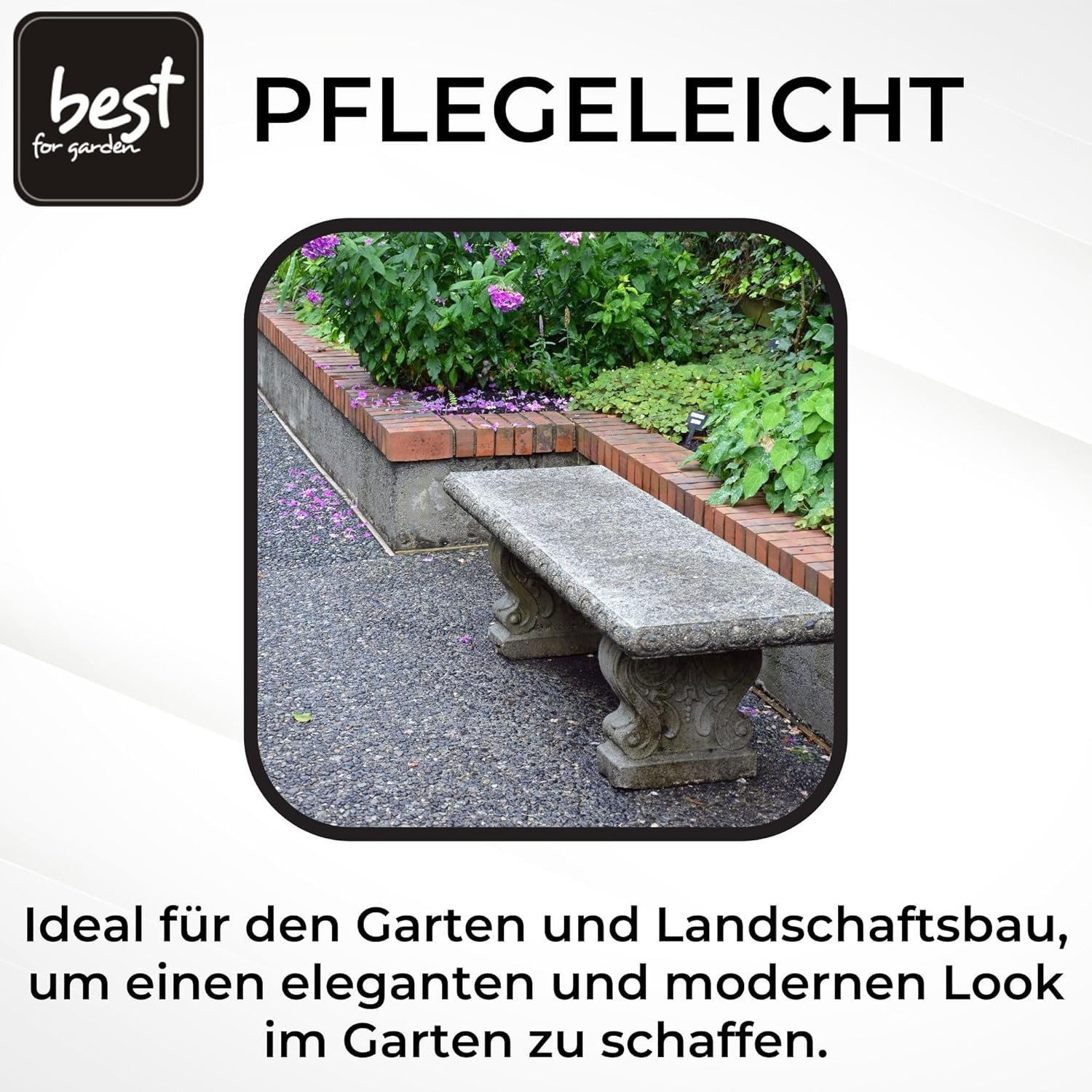 - 🖤 Zeitlose Eleganz: Die charakteristische dunkle, anthrazitfarbene bis schwarze Farbe des Basaltsplitts bringt Modernität und Klasse in jedes Gartenprojekt. Diese beständige Farbgebung bildet einen edlen Kontrast zu Pflanzen und passt hervorragend zu modernen Architekturstilen.