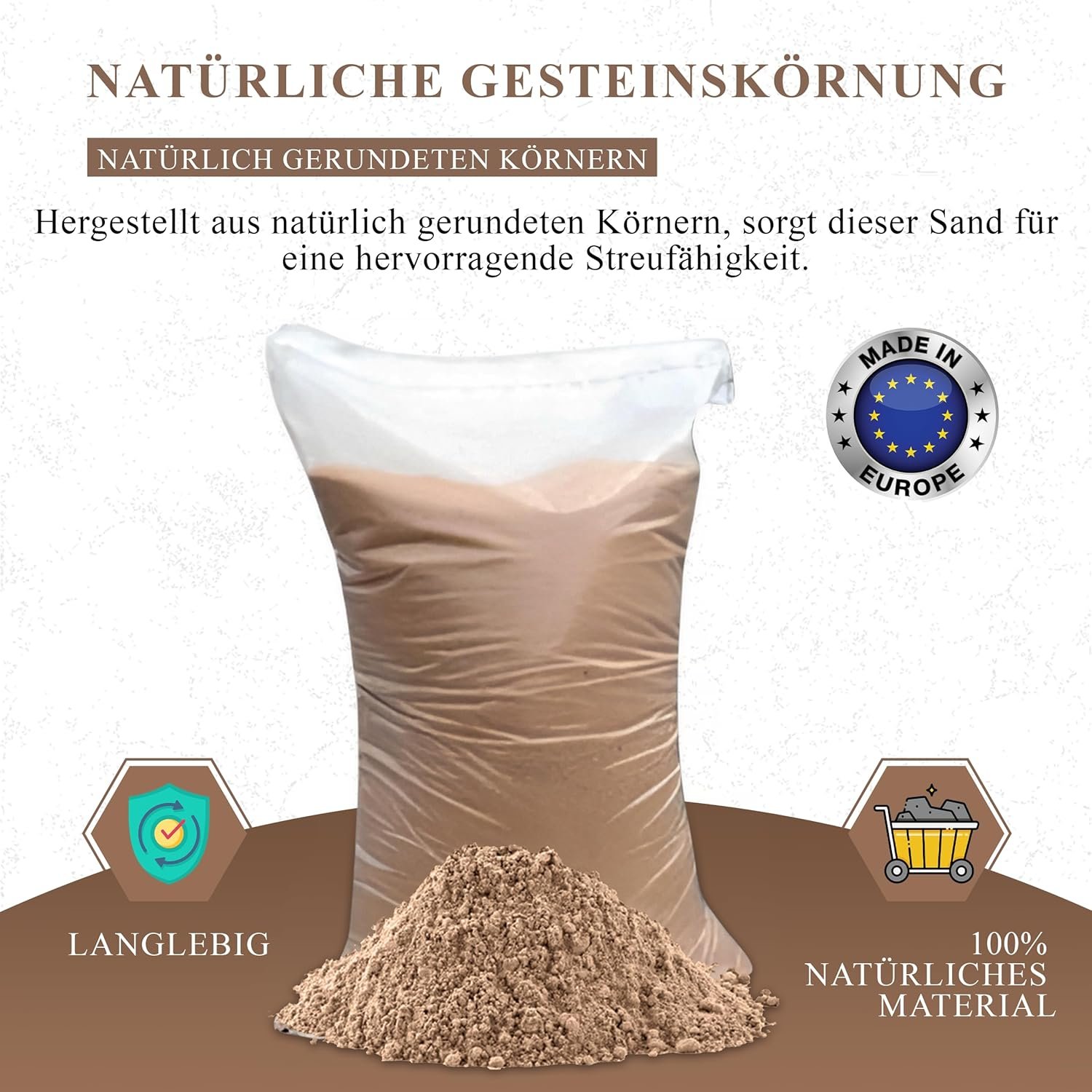 Die Körnung des Streusandes sorgt für eine effektive Abstumpfung der Oberflächen, wodurch das Rutschrisiko erheblich reduziert wird. Gleichzeitig ist die Streu leicht zu handhaben und kann problemlos mit einem Streuwagen oder von Hand verteilt werden.