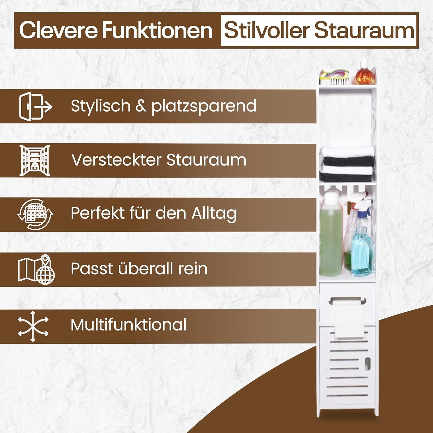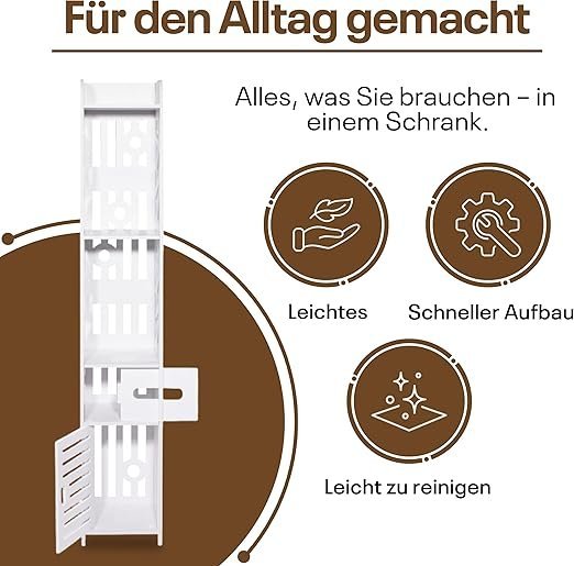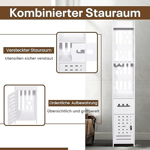 - ✔️[ 𝐕𝐢𝐞𝐥𝐬𝐞𝐢𝐭𝐢𝐠𝐞𝐬 𝐑𝐚𝐮𝐦𝐰𝐮𝐧𝐝𝐞𝐫 𝐟ü𝐫 𝐣𝐞𝐝𝐞𝐬 𝐙𝐮𝐡𝐚𝐮𝐬𝐞 ] Ideal für jedes Zuhause Dieser schmale Badezimmerschrank eignet sich perfekt für Badezimmer, Toilette, Küche, Flur, Kinderzimmer oder Waschküche. Mit seinem offenen Design und der eleganten Optik ist der hohe Badezimmerschrank nicht nur funktional, sondern auch ein Blickfang in jedem Raum. Nutzen Sie ihn als schmalen Flurschrank, hohen, schmalen Küchenschrank oder als Wäsche-Organizer – ein echter Allrounder!