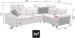 The Benny corner sofa goes beyond design with its practical features, including a large integrated bed box for extra storage. Its convertible sleep function provides an easy way to accommodate overnight guests while maintaining a tidy and organized living room.