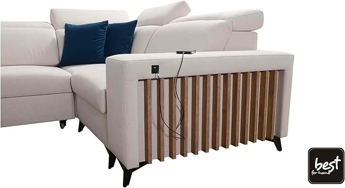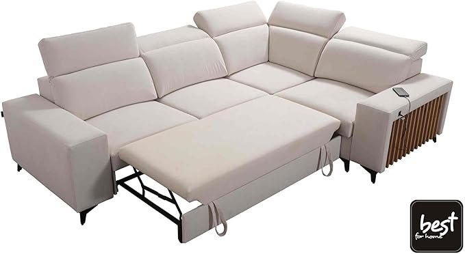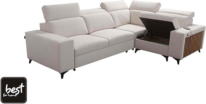 Best For Home Benny II Corner Sofa with Sleep Function and Bedding Container with USB Port