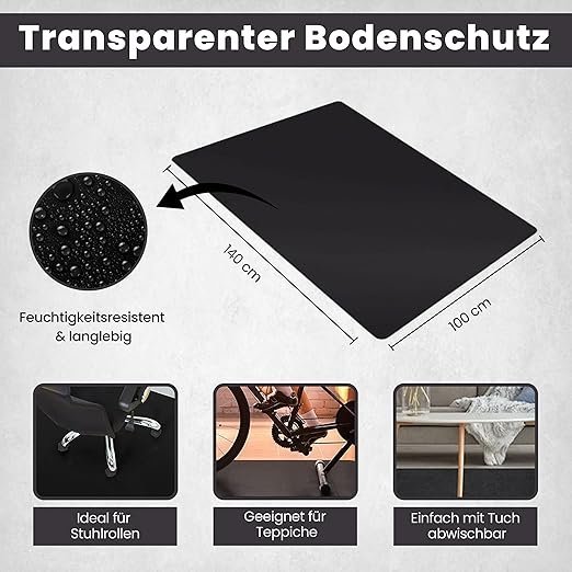 - ✅ 𝐁𝐨𝐝𝐞𝐧𝐬𝐜𝐡𝐮𝐭𝐳 𝐟ü𝐫 𝐁ü𝐫𝐨 & 𝐙𝐮𝐡𝐚𝐮𝐬𝐞: Diese Schwarz Bodenschutzmatte in der Größe 140 x 100 cm aus hochwertigem Polypropylen bietet ausgezeichneten Schutz für Laminat, Parkett und PVC-Böden. Sie ist ideal als Bürostuhl-Bodenschutzmatte oder Bürostuhl- und schützt zuverlässig vor Kratzern und Druckstellen. Ob als Rollschutzmatte für Bürostuhl oder Plastikmatte für den Boden, diese Bodenschutzmatte sorgt für langfristige Haltbarkeit.