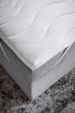 Das Bett beinhaltet einen pflegeleichten Komfortschaumtopper mit einem gesteppten Bezug und praktischem Reißverschluss. In Kombination mit der formstabilen Matratze entsteht eine ebenmäßige Liegefläche ohne Kuhlenbildung – für eine dauerhaft komfortable Nachtruhe und optimale Unterstützung der Wirbelsäule.