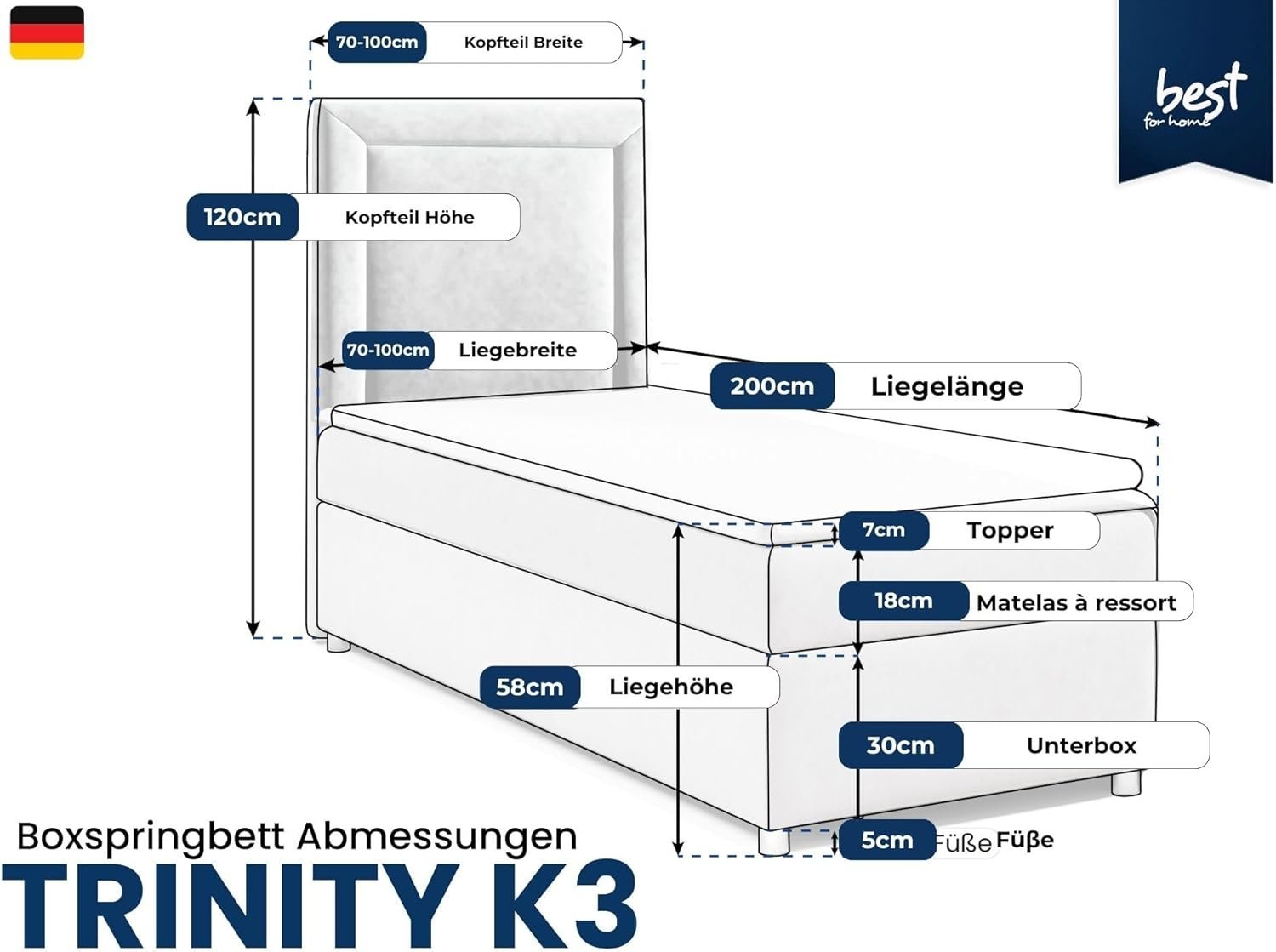 Be the first to review “Best For Home Boxspringbett mit Bettkasten Trinity K-3 Single Bonellfederkern inkl. Topper, mit Lieferung, Aufbau & Entsorgung” Cancel reply