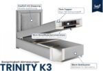 - Premium Trinity K-3 Bett – Luxus und Komfort vereint: Entdecken Sie das exklusive Trinity K-3 Einzelbett, erhältlich in 70×200 cm, 80×200 cm, 90×200 cm und 100×200 cm. Dieses Premium Bett 90×200 bietet Luxus und Komfort für erholsamen Schlaf. Mit seinem eleganten, langlebigen Design sorgt das Trinity K-3 für außergewöhnliche Unterstützung und Stil. Wählen Sie aus verschiedenen Farben, um das Bett Ihrem persönlichen Stil anzupassen.