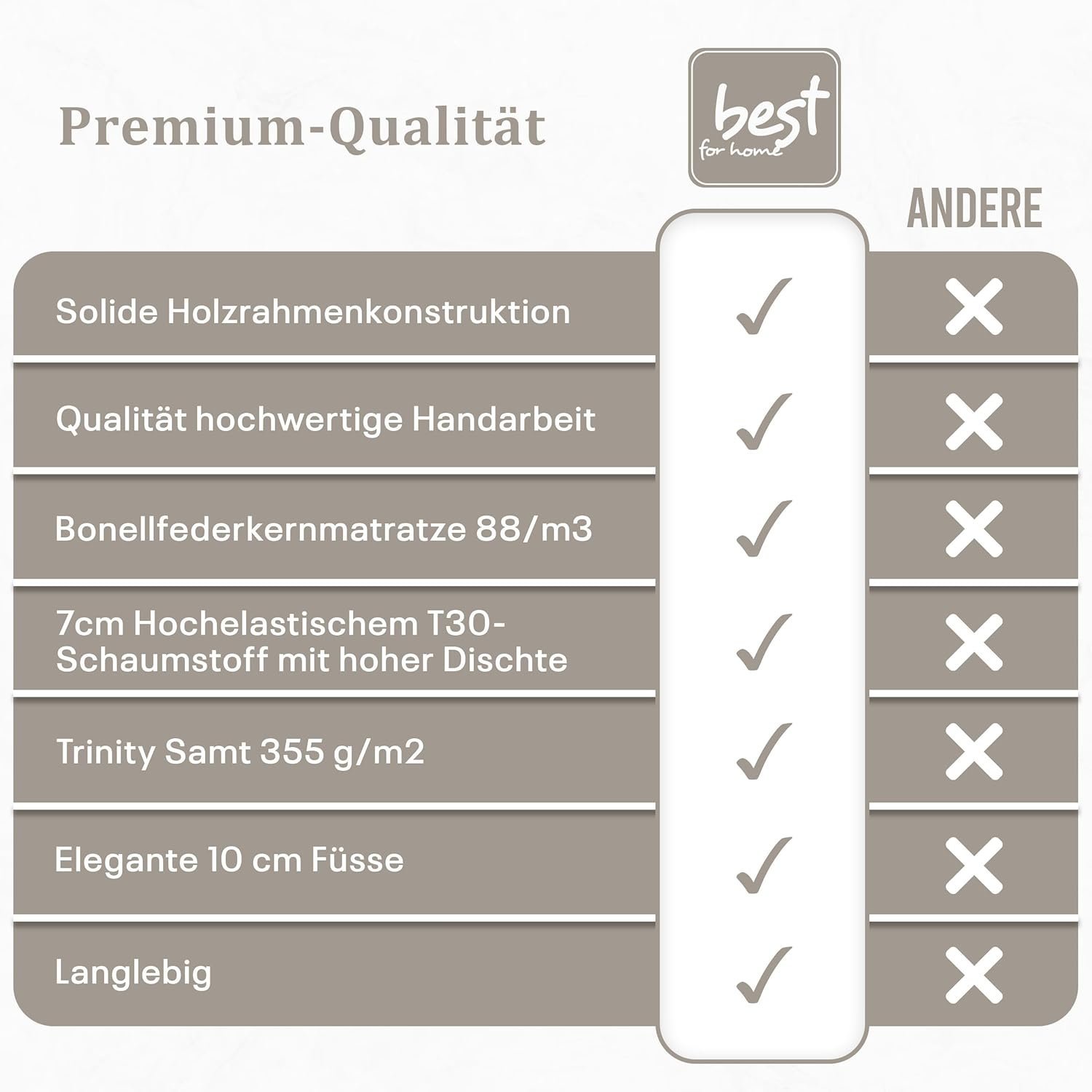Hochwertige Verarbeitung von Best For Home: Als Produkt der renommierten Marke Best For Home überzeugt dieses Bett durch solide Verarbeitung, stabile Konstruktion und langlebige Materialien. Es wurde entwickelt, um über Jahre hinweg zuverlässigen Komfort und stilvolles Design zu vereinen – eine langfristige Investition in Ihre Wohnqualität.