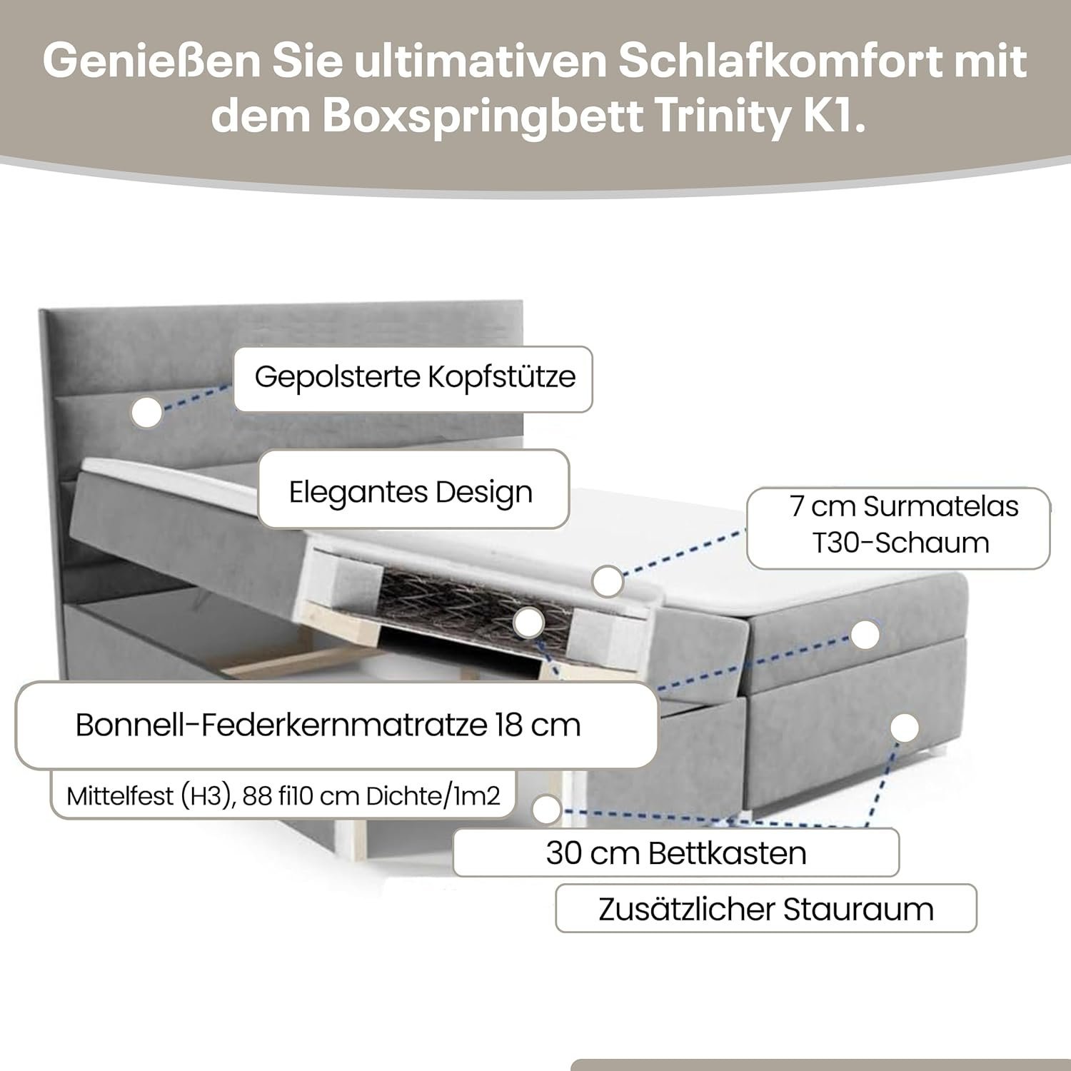 Best For Home Boxspringbett mit Bettkasten Trinity K1 Bonellfederkern inkl. Topper, mit Lieferung, Aufbau & Entsorgung
