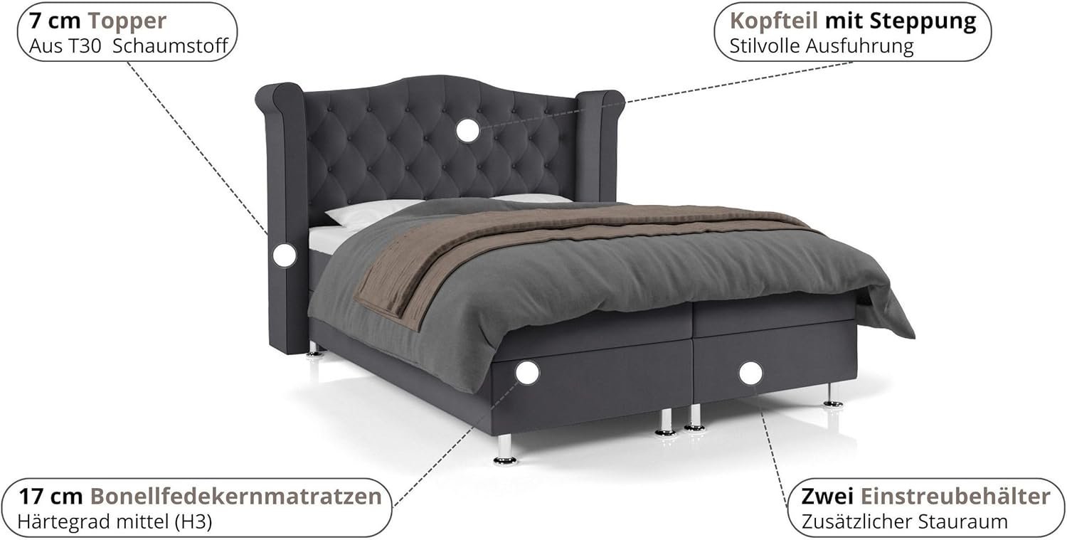 Boxspringbett Saturn mit Bettkasten – Perfekte Kombination aus Komfort und Design