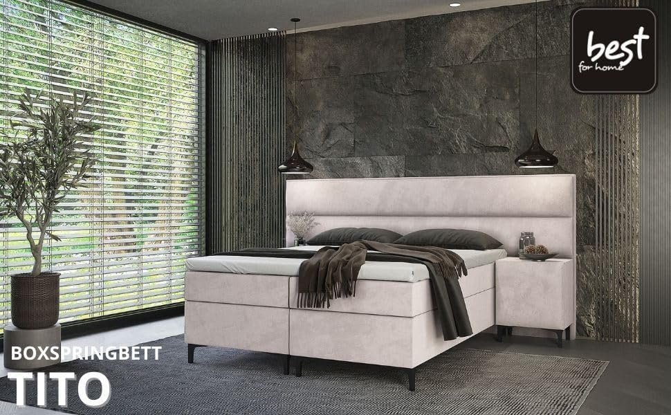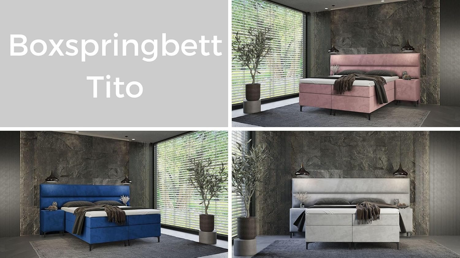 Im Bett Tito ist diese Erholung garantiert und Sie wachen mit neuer und frischer Energie am nächsten Morgen auf. Außerdem bietet das Boxspringbett durch seine optische Klasse eine echte Aufwertung für jeden Schlafbereich. Gepolsterter Nachttisch, schlicht und elegant zugleich. Inkl. 2x Nachtisch.