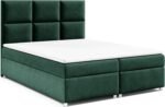 Das moderne Boxspringbett in Grün mit den Maßen 200 x 200 cm überzeugt durch ein 120 cm hohes Kopfteil und eine Gesamthöhe von 1,2 m. Das Bett bietet mit 88 Federn pro m² und stabilen 5 cm hohen Füßen eine langlebige und robuste Konstruktion, die eine elegante Aufwertung für jeden Schlafbereich darstellt.