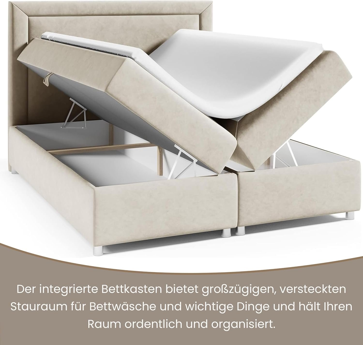 - ✔️[𝐅𝐞𝐝𝐞𝐫𝐦𝐞𝐜𝐡𝐚𝐧𝐢𝐬𝐦𝐮𝐬 & 𝐒𝐭𝐚𝐮𝐫𝐚𝐮𝐦] Dieses Boxspringbett 140×200 mit Bettgestell verfügt über integrierte Federmechanismen in den beiden Bettkästen, die das Verstauen von Bettwäsche und anderen Utensilien erleichtern. Diese Stauraumlösung hilft dabei, Ihr Schlafzimmer ordentlich zu halten, und sorgt gleichzeitig dafür, dass alles Wichtige griffbereit bleibt. Das Bett mit Stauraum vereint stilvolles Design mit praktischer Funktionalität für Ihr Schlafzimmer.