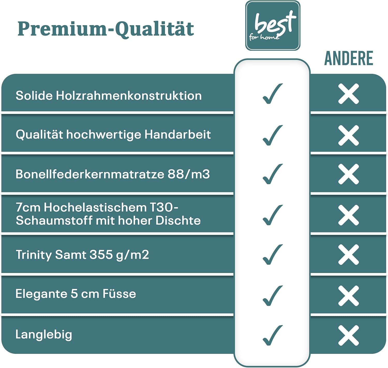 - ✔️【𝐇𝐚𝐮𝐭𝐟𝐫𝐞𝐮𝐧𝐝𝐥𝐢𝐜𝐡𝐞𝐫 & 𝐥𝐚𝐧𝐠𝐥𝐞𝐛𝐢𝐠𝐞𝐫 𝐁𝐞𝐳𝐮𝐠】 Der verwendete Trinity-Stoff ist besonders weich und hautfreundlich. Er verleiht dem Polsterbett 160×200 eine elegante Optik und bleibt gleichzeitig formstabil und pflegeleicht. Egal ob Boxspringbett 160×200, Polsterbett mit Bettkasten oder Boxspringbett 160×200 mit Bettkasten – dieser Stoff bietet hohen Komfort bei maximaler Haltbarkeit. Auch als Doppelbett 160×200 mit Matratze ein echter Blickfang.