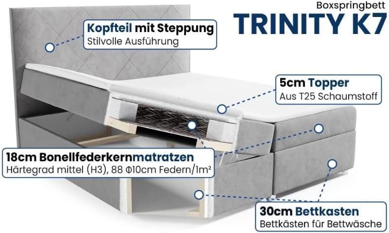 - Boxspringbett mit Bettkasten Trinity K-7 Bonellfederkern inkl. Topper mit Lieferung, Aufbau & Entsorgung. Die Lieferung inkl. Der Aufbau erfolgt Gratis bis in die Wohnung.