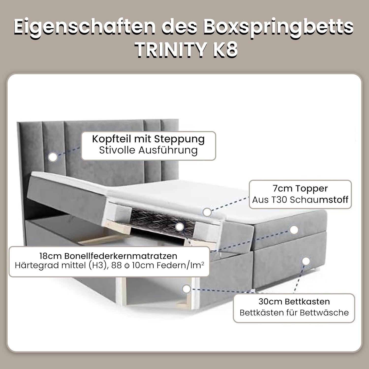 - ✔️【𝐊𝐨𝐦𝐟𝐨𝐫𝐭𝐚𝐛𝐥𝐞 𝐋𝐢𝐞𝐟𝐞𝐫𝐮𝐧𝐠 & 𝐀𝐮𝐟𝐛𝐚𝐮𝐨𝐩𝐭𝐢𝐨𝐧𝐞𝐧】 Das Trinity K-8 wird bequem bis zur Bordsteinkante geliefert. Für zusätzlichen Service wie Lieferung bis zur Wohnungstür oder Montageservice können Sie unseren Amazon-Shop besuchen. Ob Sie ein Bett mit Matratze 140×200, ein Boxspringbett mit Bettkasten oder ein Bett 140×200 mit Stauraum bestellen – der Aufbau gelingt schnell und stressfrei. Auch als Boxspringbett mit Bettkasten oder Boxspringbett 140×200 verfügbar.