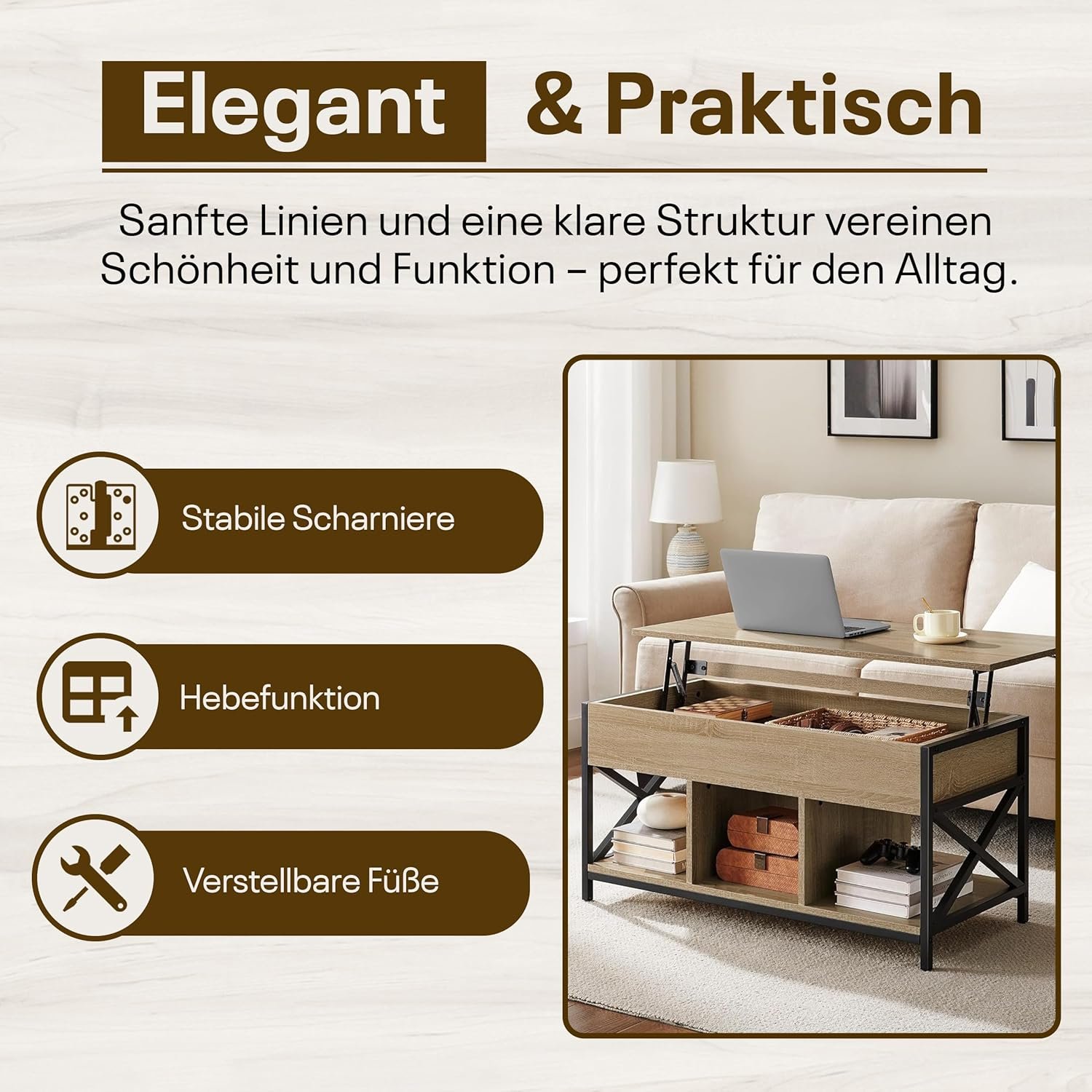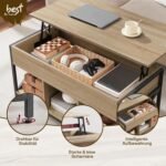 - ✅【𝐏𝐫𝐚𝐤𝐭𝐢𝐬𝐜𝐡𝐞𝐬 𝐃𝐞𝐬𝐢𝐠𝐧】Der Couchtisch beeindruckt mit seinem raffinierten Design und verfügt über eine ausziehbare Tischplatte, die zusätzlichen Arbeitsraum bietet. Der Couchtisch aus Holz bietet Platz und drei separate Fächer, die sich perfekt zum ordentlichen Verstauen Ihrer Bücher, Zeitschriften und Fernbedienungen eignen. So haben Sie alles stets organisiert und griffbereit, ohne auf Funktionalität oder Stil zu verzichten.