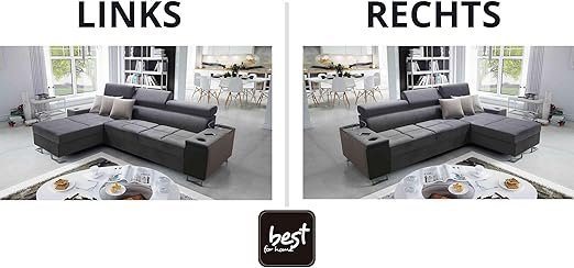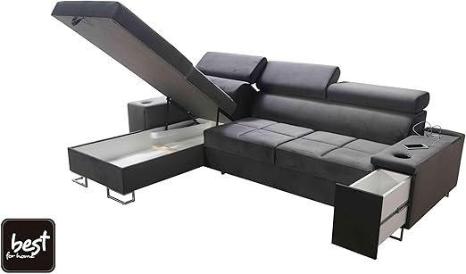 Best For Home Ecksofa Anita I Maxi Luxus und Elegantes mit Schlaffunktion, Teile hat einen Öffnungsbügel