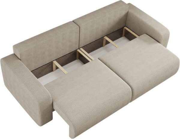 Der praktische Bettkasten unter der Sitzfläche schafft zusätzlichen Stauraum für Bettwäsche, Kissen oder Decken. So haben Sie alles griffbereit und Ihr Wohnzimmer bleibt aufgeräumt – ideal für kleinere Wohnungen oder minimalistische Wohnkonzepte. -