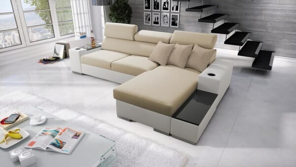 Das Ecksofa ANITA I MAXI ist die ideale Kombination aus modernem Design und durchdachter Ausstattung. Die integrierte Schlaffunktion verwandelt das Sofa mit nur wenigen Handgriffen in eine großzügige Liegefläche – perfekt für Übernachtungsgäste oder entspannte Abende vor dem Fernseher. Ihre Gäste werden den Komfort lieben! -