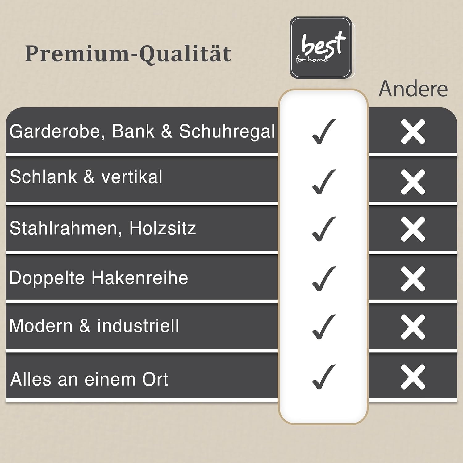 Best For Home Garderobenständer – Kleiderständer mit Sitzbank, 2 Schuhablagen & 9 Haken – Stahl, Schwarz