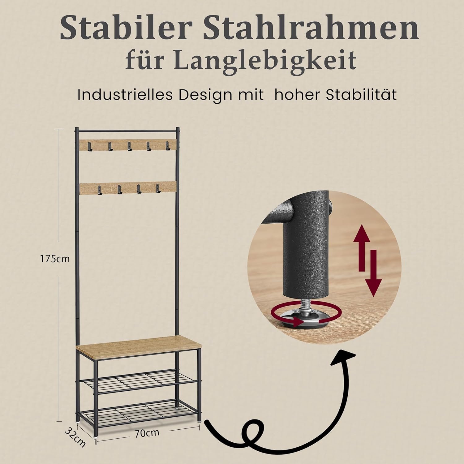 - ✔️[𝐏𝐫𝐚𝐤𝐭𝐢𝐬𝐜𝐡𝐞𝐬 & 𝐏𝐥𝐚𝐭𝐳𝐬𝐩𝐚𝐫𝐞𝐧𝐝𝐞𝐬 𝐃𝐞𝐬𝐢𝐠𝐧] Dieser freistehende Kleiderschrank mit Sitzbank und Schuhregalen eignet sich hervorragend zur Organisation von Jacken, Mänteln, Taschen und Schals in Ihrem Flur oder Korridor. Ob als Kleiderständer, Garderobenständer oder Jackenständer – er spart Platz und bietet gleichzeitig großzügigen Stauraum. Ideal für kleinere Räume, hält dieser freistehende Kleiderschrank Ihr Zuhause ordentlich und organisiert, ohne dabei an Stil oder Funktionalität zu verlieren.
