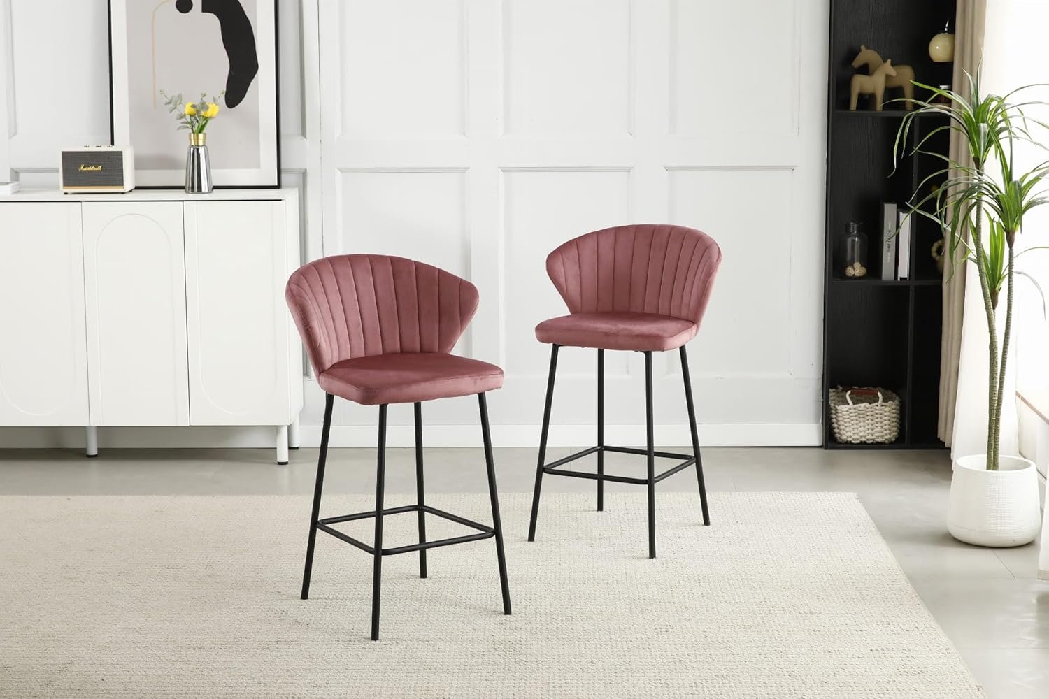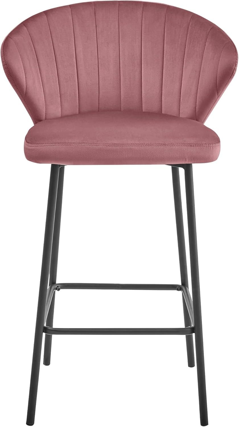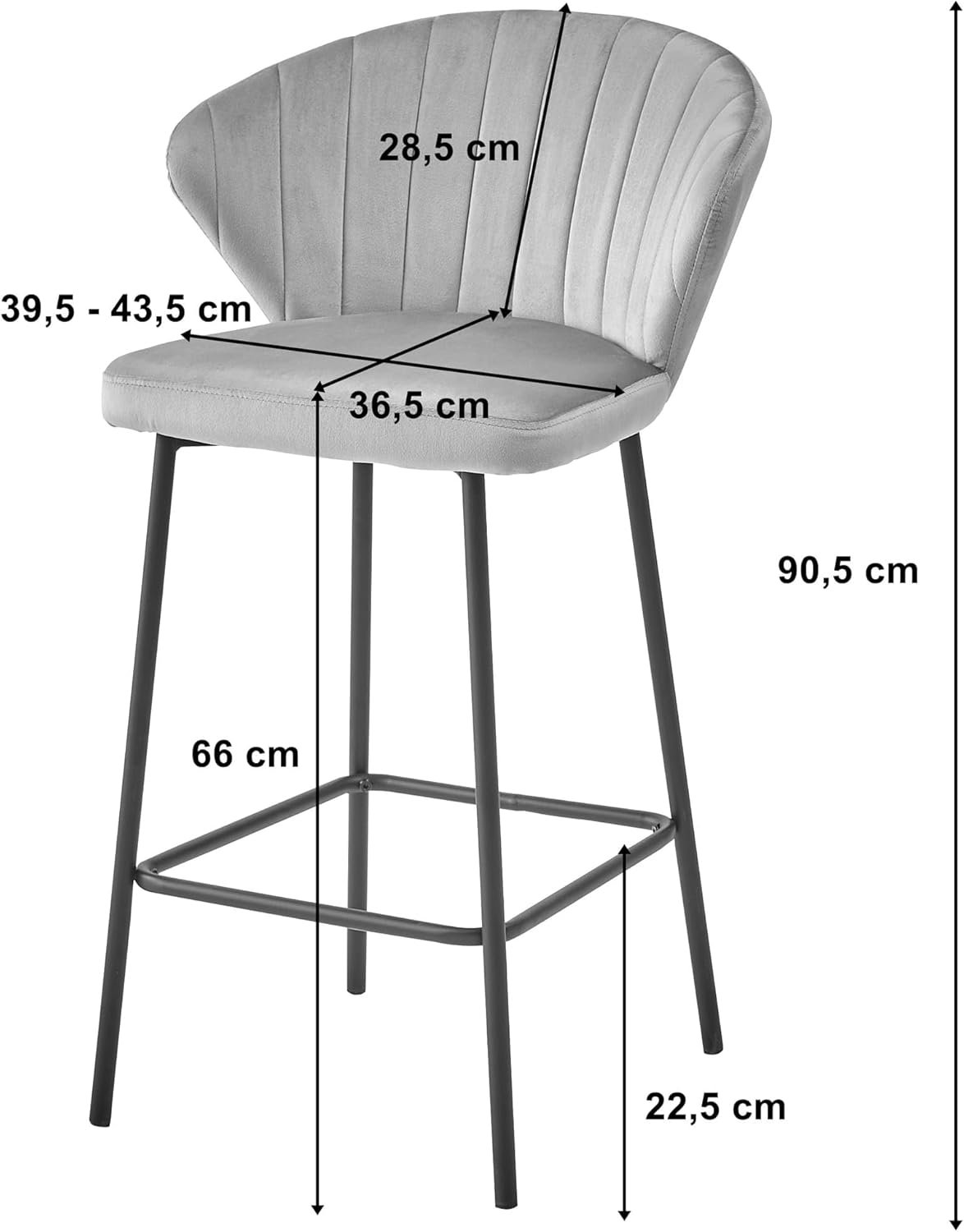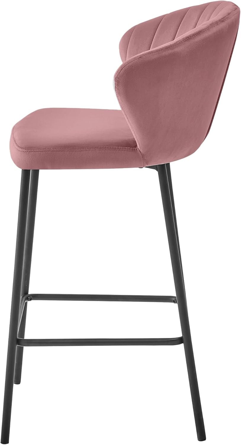 Die angenehm gepolsterte Sitzfläche aus hochwertigem Samt sorgt für ein luxuriöses Sitzgefühl. Die pulverbeschichteten Stahlbeine in Schwarz bieten zuverlässigen Halt und eine moderne Optik. -
