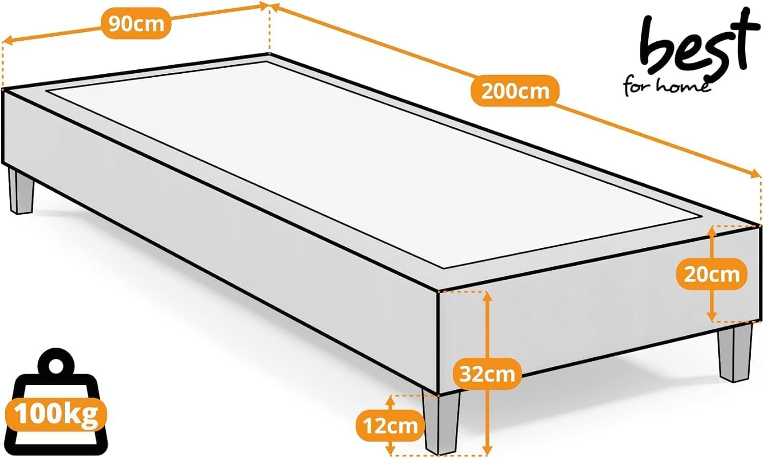 Best for Home Hotelbett Boxspringbett 70×200 cm Beige – Boxspringgestell ohne Matratze, stabiles Bettgestell