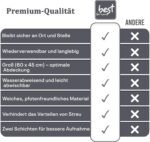 Die Katzenklo-Matte wird in Deutschland hergestellt und erfüllt hohe Qualitäts- und Sicherheitsstandards. Best For Home steht für langlebige und zuverlässige Produkte, die den Alltag mit Haustieren erleichtern und für ein sauberes, gepflegtes Zuhause sorgen.
