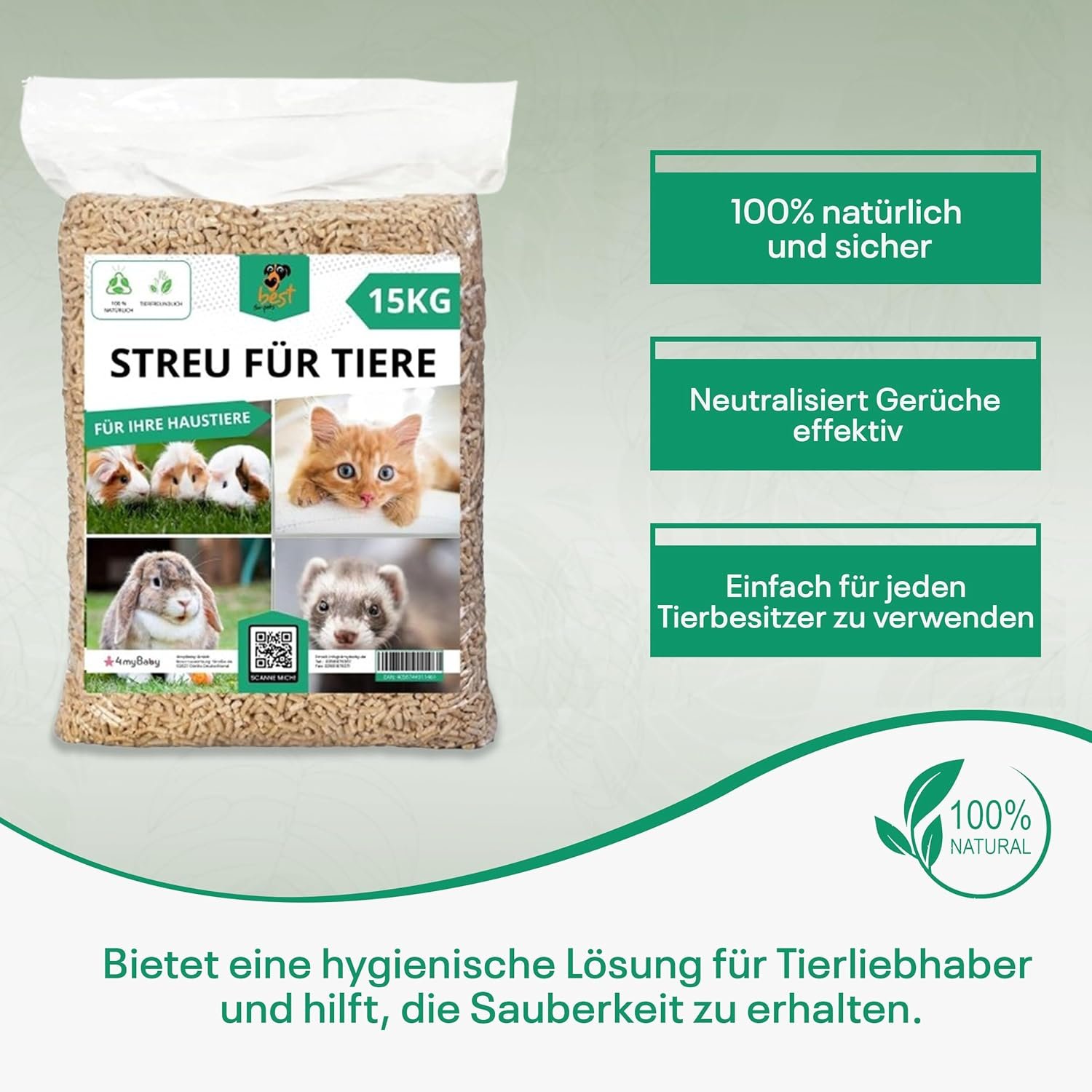 Unsere Streu besteht zu 100 % aus natürlichen Materialien, die vollkommen sicher für alle Haustiere sind. Ob als Katzenstreu, Kaninchen-Einstreu oder Hasenstreu – diese Bio-Streu ist frei von schädlichen Chemikalien, besonders sanft zur Haut und bietet ein gesundes, umweltfreundliches Wohlfühlklima für Ihre Tiere.