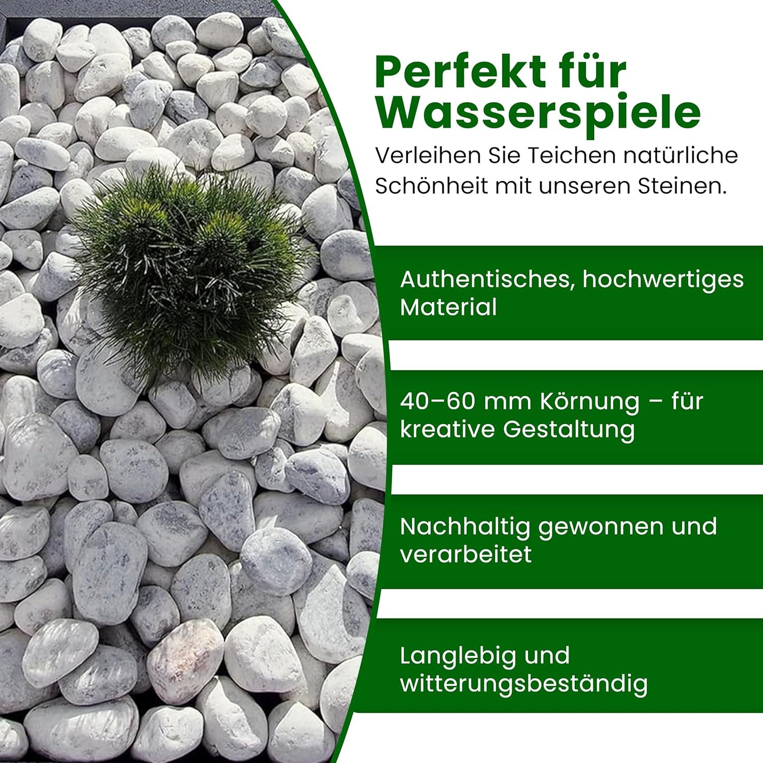 Best for Home Kieselsteine 40–60 mm – Weiße Ziersteine für Garten & Boden, Natursteine, 25 kg, umweltfreundlich