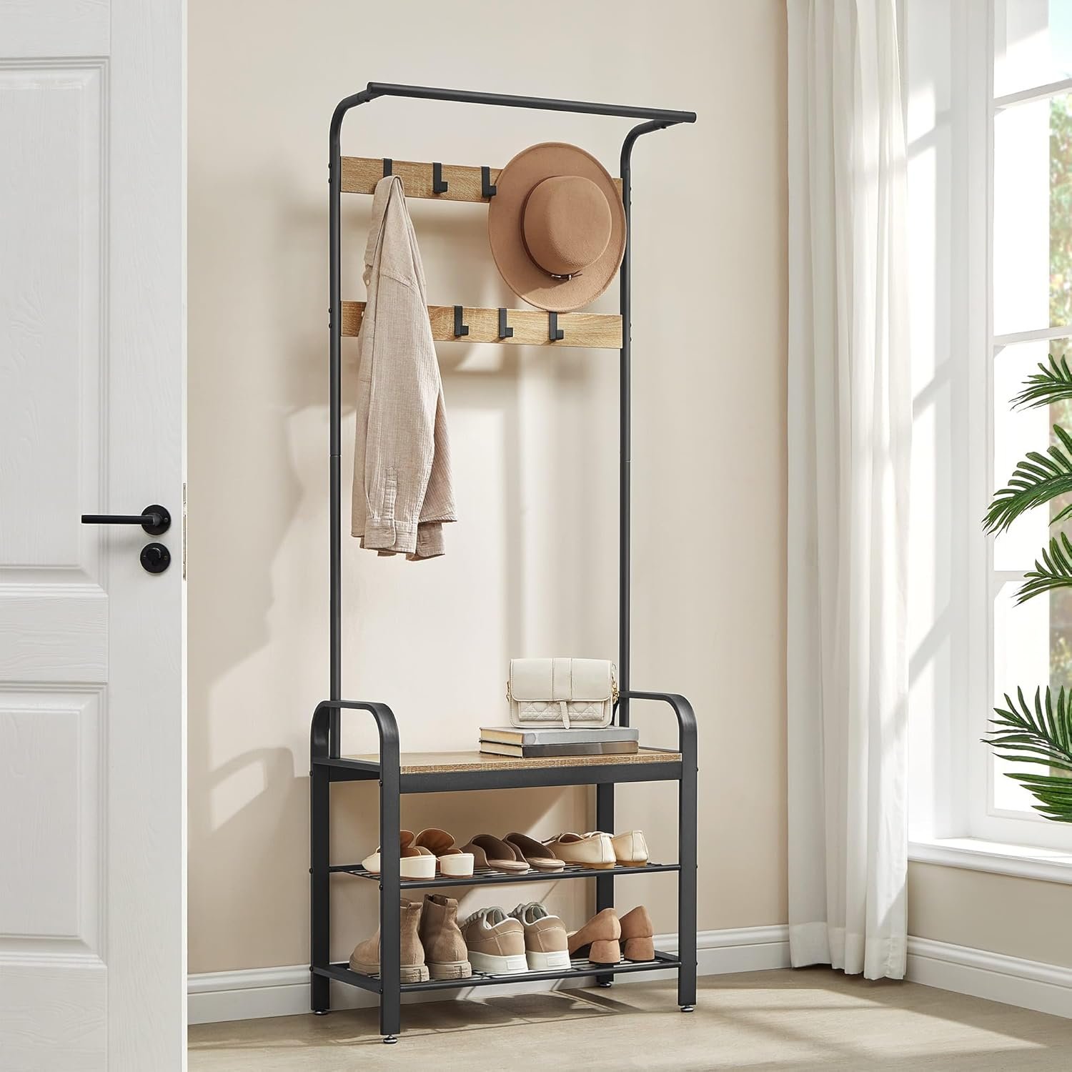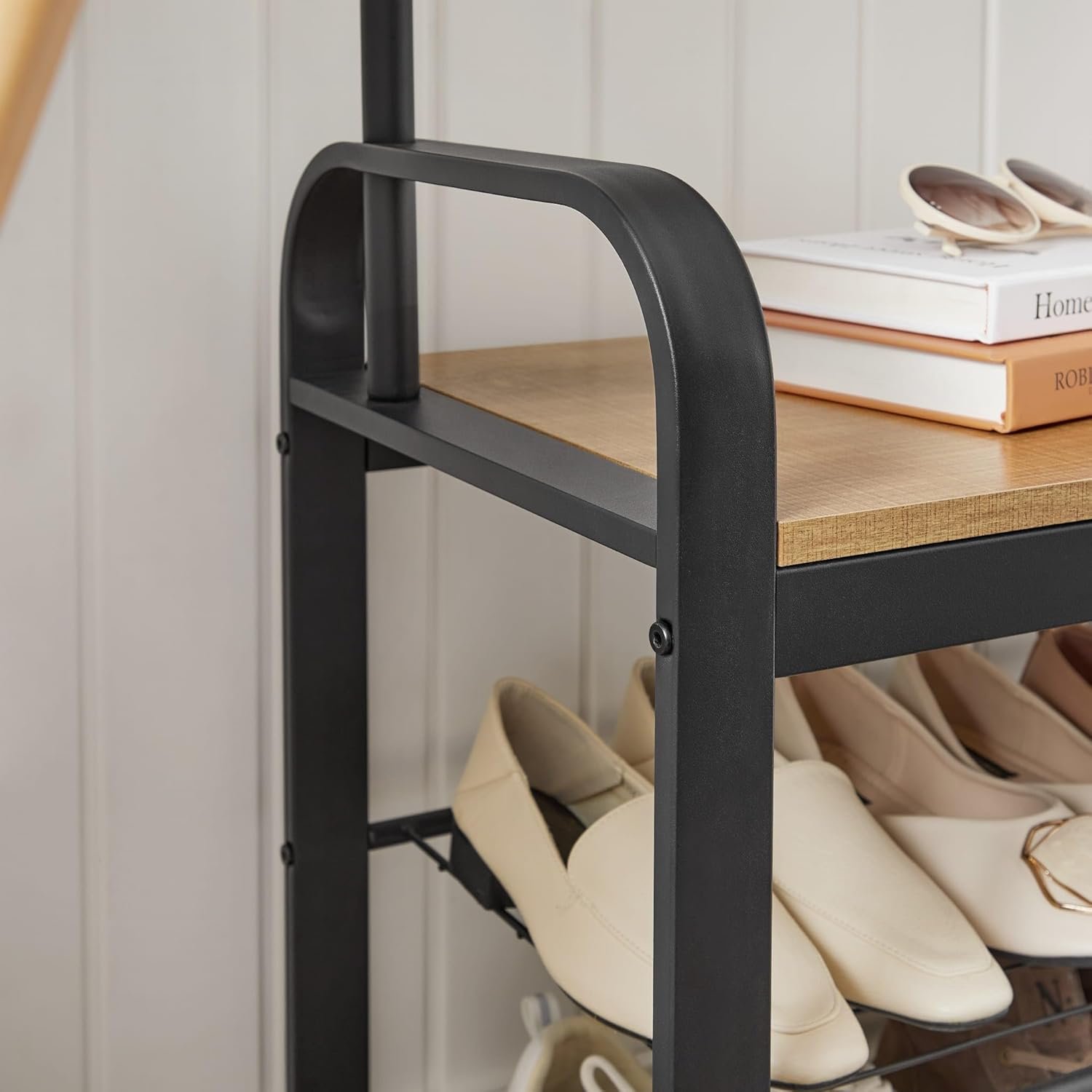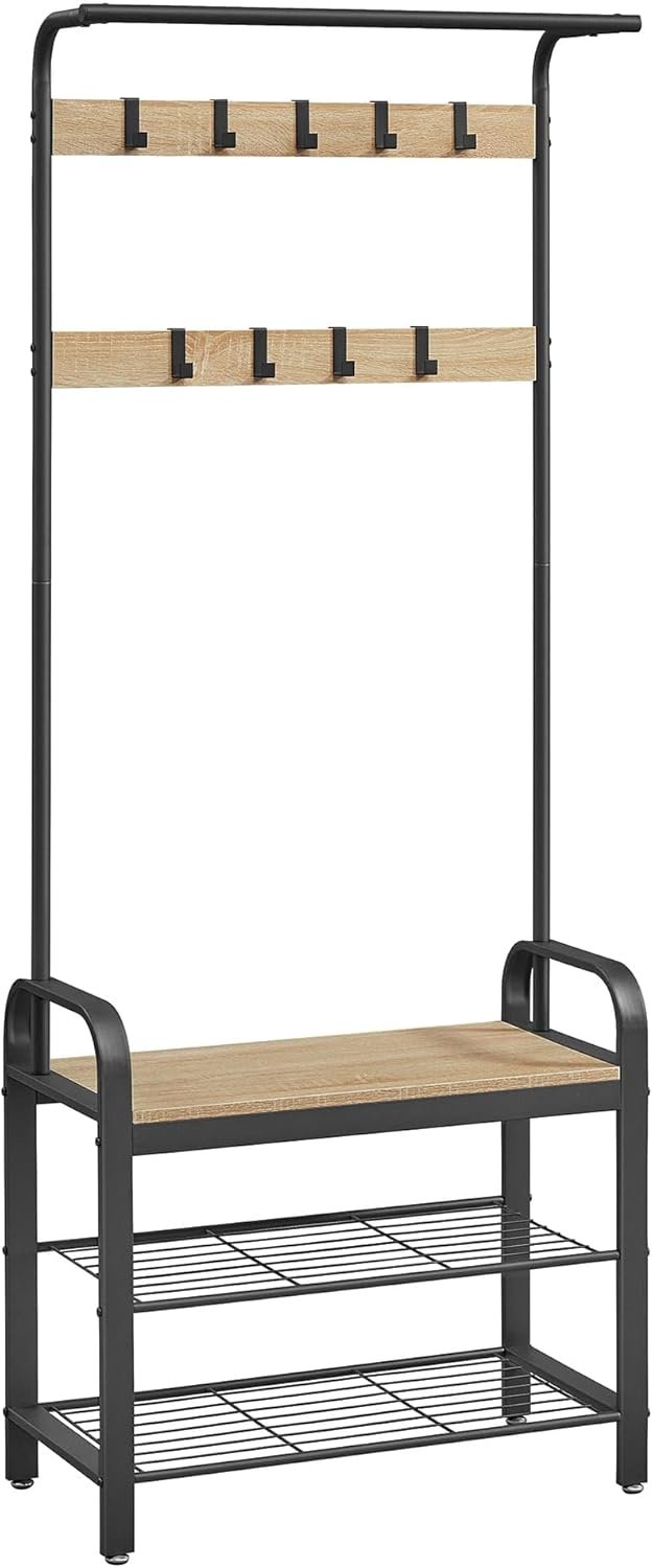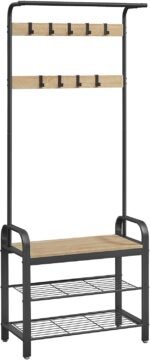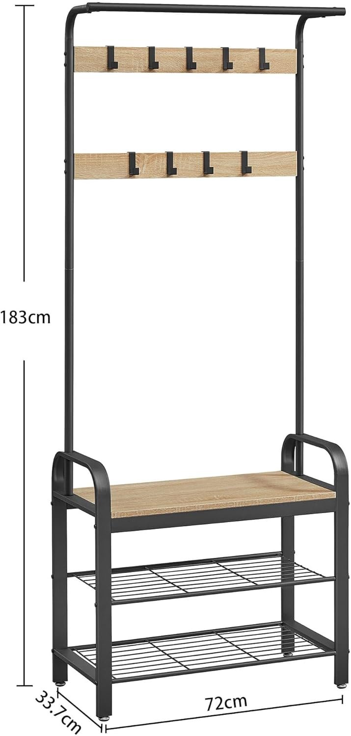 Das Best For Home Kleiderhängersystem überzeugt durch sein multifunktionales Design mit 9 robusten Haken, einer stabilen Kleiderstange, einer bequemen Sitzfläche und zwei geräumigen Schuhablagen. Diese Kombination bietet optimale Ordnungsmöglichkeiten für Jacken, Taschen und Schuhe – perfekt für den Flur oder Eingangsbereich.