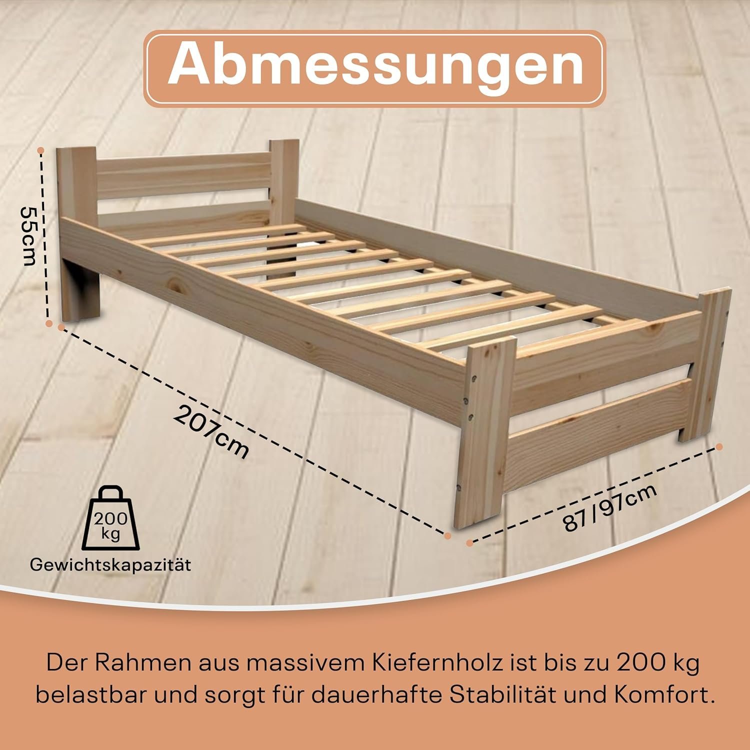 - Made in the EU: Unser Bett bietet höchste Qualität und Langlebigkeit. Es ist ideal als Kinderbett, das für Sicherheit und Stabilität sorgt. Hergestellt aus massivem Holz, gewährleistet es eine Belastbarkeit von bis zu 200 kg. Die einfache Montage macht es zu einer praktischen Wahl. Das Massivholzbett vereint Komfort und robuste Bauweise, perfekt für jedes Schlafzimmer. Mit elegantem Design und solider Konstruktion ist es sowohl funktional als auch stilvoll.