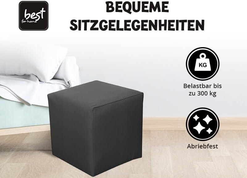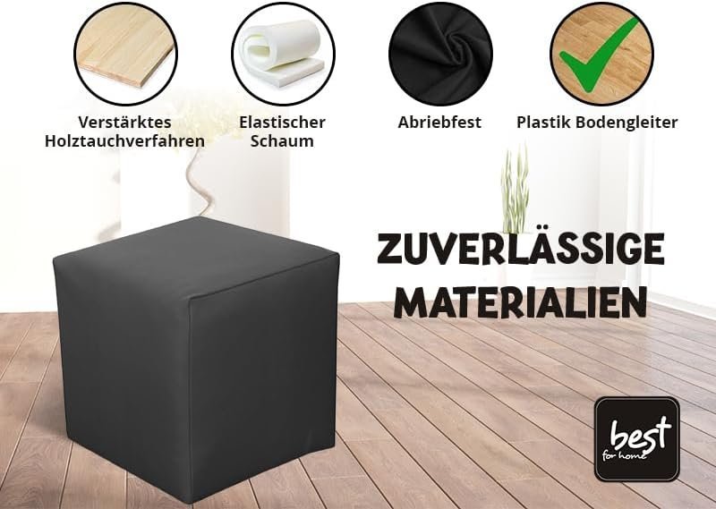 Best for Home Sitzhocker Kunstleder Sitzwürfel Bodenkissen Fußhocker 40x40x40 cm viele Farben