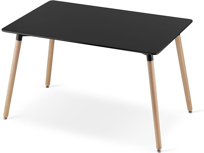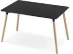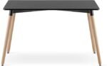 Farbkombination: Schwarze Tischplatte mit robusten Buchenholzbeinen – stilvoll und vielseitig kombinierbar.