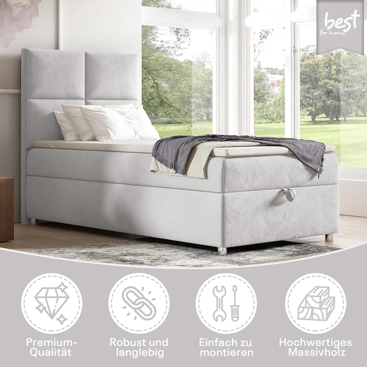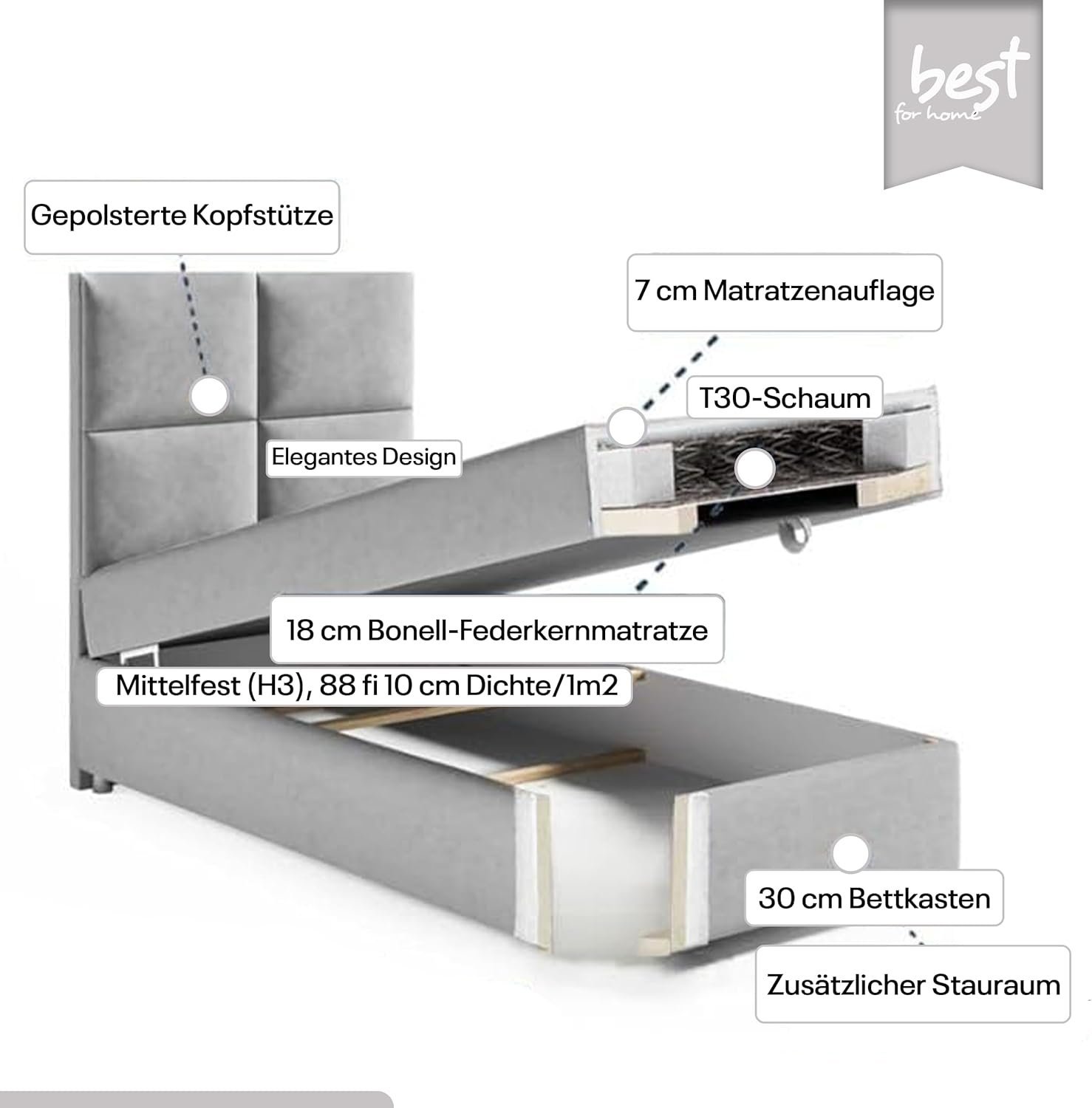 Best For Home Trinity K2 Boxspringbett Single Bonellfederkern | Boxspringbett mit Matratze und Topper | Boxspringbett 90×200 mit Bettkasten| Einzelbett | Polsterbett – Lieferung an die Bordsteinkante