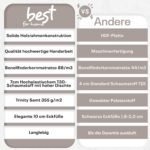 - Vielseitige Farbauswahl für jedes Schlafzimmer: Der Stoff Trinity für das Boxspringbett bietet Weichheit und Strapazierfähigkeit sowie eine breite Farbauswahl, die sich harmonisch in verschiedene Raumgestaltungen einfügt. Die Farboptionen verleihen dem Bett zeitlose Eleganz und erlauben es, Ihren Raum individuell zu gestalten. Ob kräftige Töne oder dezente Nuancen – der Stoff Trinity verbessert die Ästhetik jedes Schlafzimmers und ist ideal für alle, die Komfort und Design schätzen.