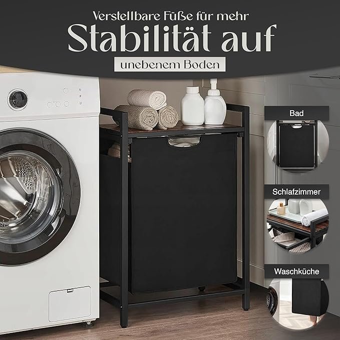 Best For Home | Wäschekorb | Rustikaler Badezimmerschrank mit robustem Stahlrahmen | Oxford-Gewebe | Verstellbare Füße | Wäschesammler für Badezimmer, Waschküche | wäschekorb mit ablage